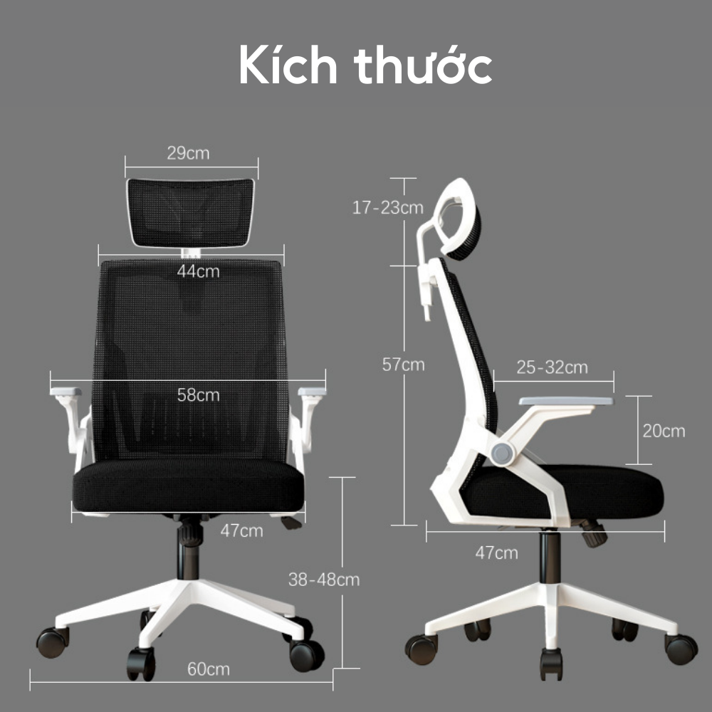 • Tựa lưng: Lưới đàn hồi tốt, mang lại cảm giác thoáng mát, không gây bí bách.