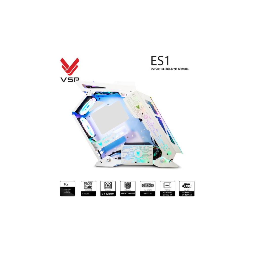 Thùng máy Case VSP ESPORT ROG ES1 được sơn tĩnh điện với 2 tùy chọn đen – hồng - trắng cực đẹp. Với thiết kế sáng tạo, Case VSP ESPORT ROG ES1 coa diện tích nhỏ gọn, không chiếm nhiều không gian. Bên cạnh đó, case còn được trang bị hệ thống đèn LED RGB cực bắt mắt và hiện đại. Case VSP ESPORT ROG ES1 được trang bị 4 mặt mica có LED, tặng kèm 2 tấm LED, 1 tấm cover nguồn có LED, 1 giá đỡ VGA có LED.