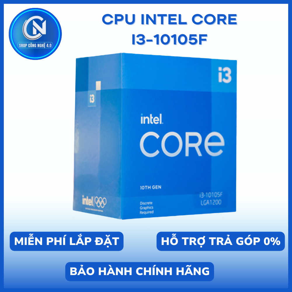 CPU Intel Core i3 10105F (Intel LGA1200 - 4 nhân - 8 luồng - Tần số cơ bản 3,7GHz - Turbo 4,4GHz - Bộ nhớ đệm 6MB - Không có iGPU)