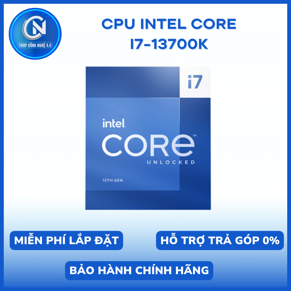 CPU Intel Core i7 13700K là thành viên mới của dòng Core i7 gia đình Alder Lake-S mới nhất. CPU hỗ trợ socket 1700 và bộ nhớ DDR4, DDR5. Nhờ Intel Hyper-Threading, hiệu suất của Intel Core i7 thế hệ 13 đã được tăng lên rất nhiều, lên tới 24 luồng, có bộ nhớ đệm tăng lên 30MB và chạy ở tốc độ mặc định 3,4GHz. Tuy nhiên, nhiệm vụ phụ thuộc vào khối lượng công việc được đảm bảo, nó có thể lên tới 5,4GHz.