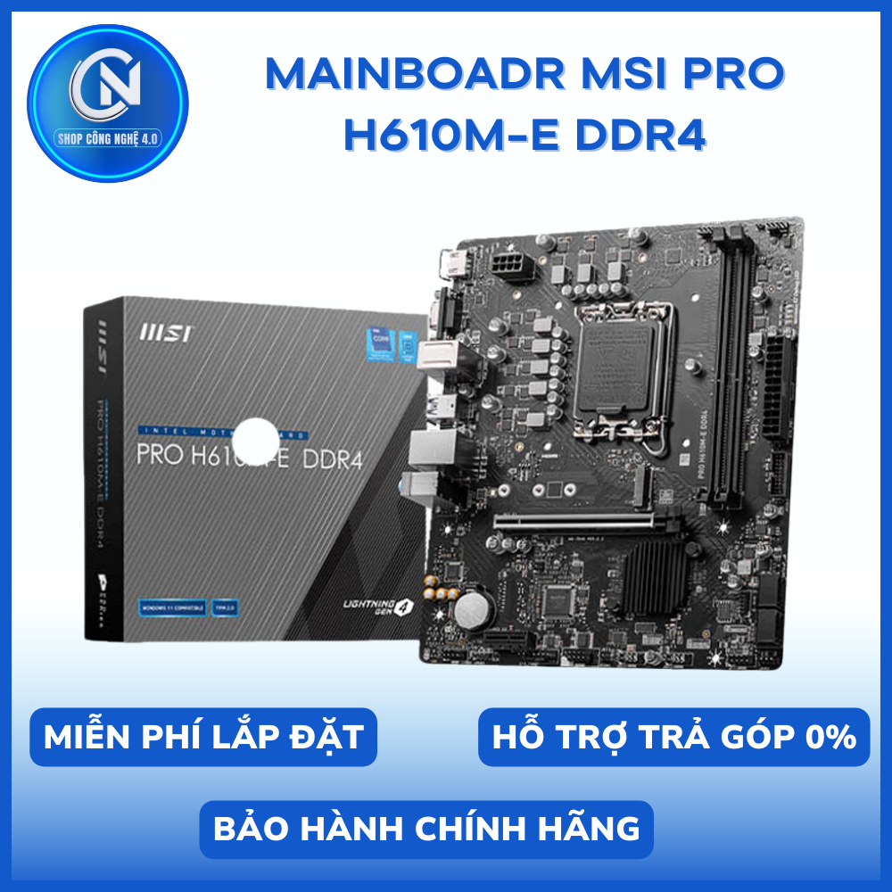 Mainboard MSI này có chip set H610, socket 1700 có khả năng tương thích với các bộ vi xử lý Celeron, Pentium Gold và Intel Core thế hệ thứ 12 và 13. Đảm bảo tương thích cao và đồng bộ toàn hệ thống ổn định, cho phép bạn kiểm soát được tốc độ và nhiệt độ cho toàn hệ thống trên giao diện đồ họa đơn giản ở BIOS và phần mềm.