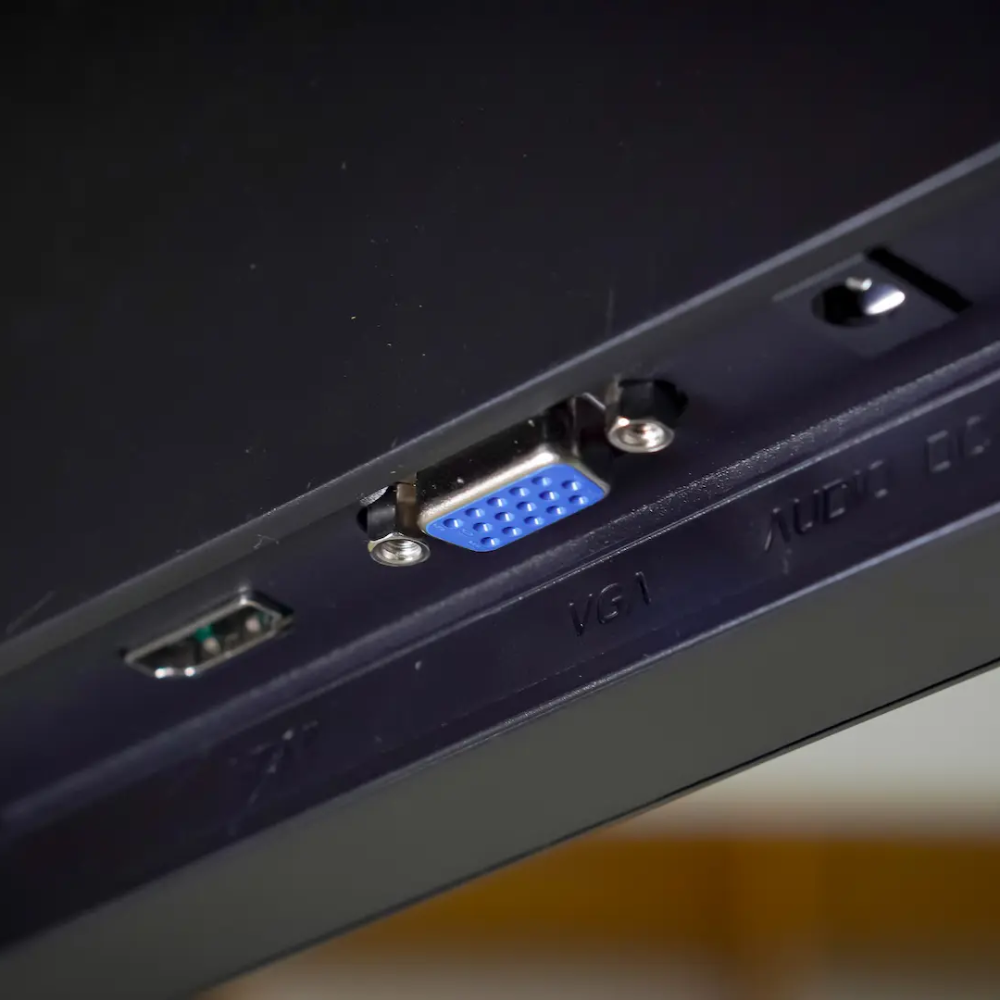 Màn hình được trang bị đa cổng kết nối bao gồm DC, VGA, và HDMI, giúp bạn dễ dàng kết nối với các thiết bị ngoại vi như máy tính, laptop, console game và nhiều hơn nữa. Điều này tạo điều kiện thuận lợi cho việc trải nghiệm giải trí hoặc làm việc hiệu quả.