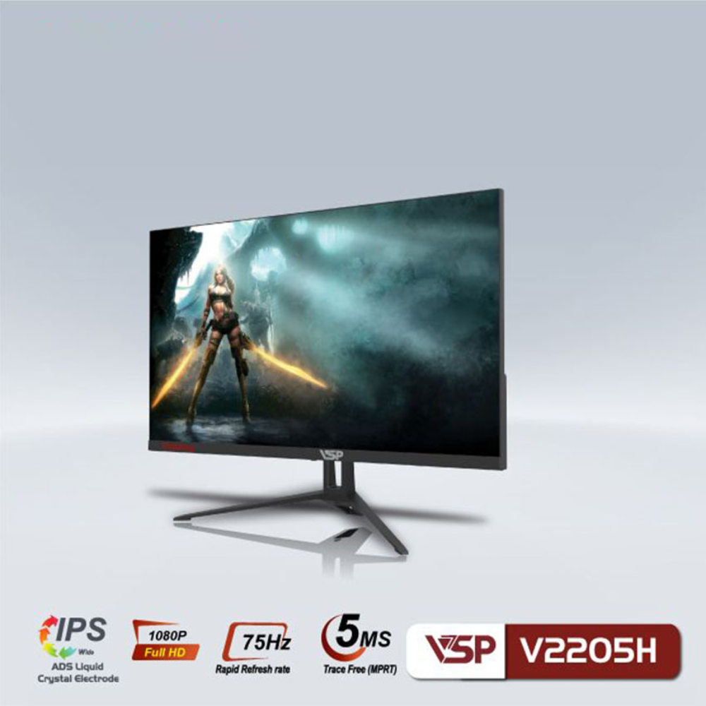 Với kích thước 21.45 inch và độ phân giải Full HD sắc nét, màn hình VSP V2205H như một khung cửa sổ mở ra không gian giải trí sống động. Thiết kế màn hình phẳng, hiện đại, kết hợp cùng viền siêu mỏng tạo nên vẻ ngoài tinh tế, giúp bạn đắm chìm hoàn toàn vào thế giới hình ảnh.