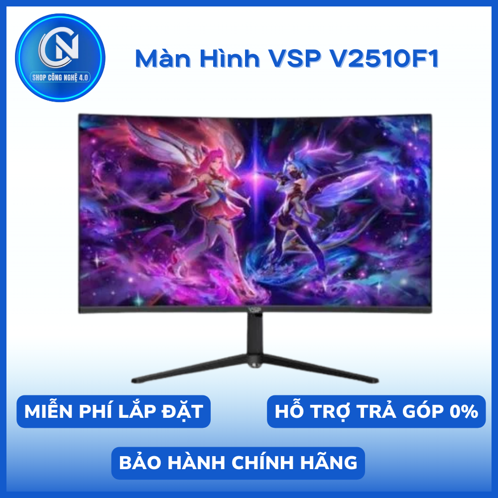 Điểm nổi bật của V2510F1 chính là tấm nền VA với độ sáng 280cd/m² và độ tương phản 3000:1, giúp hiển thị hình ảnh chân thực và sống động. Thời gian phản hồi nhanh 1ms đảm bảo không có hiện tượng bóng mờ, phù hợp cho các tác vụ yêu cầu phản hồi nhanh như chơi game hay chỉnh sửa video.