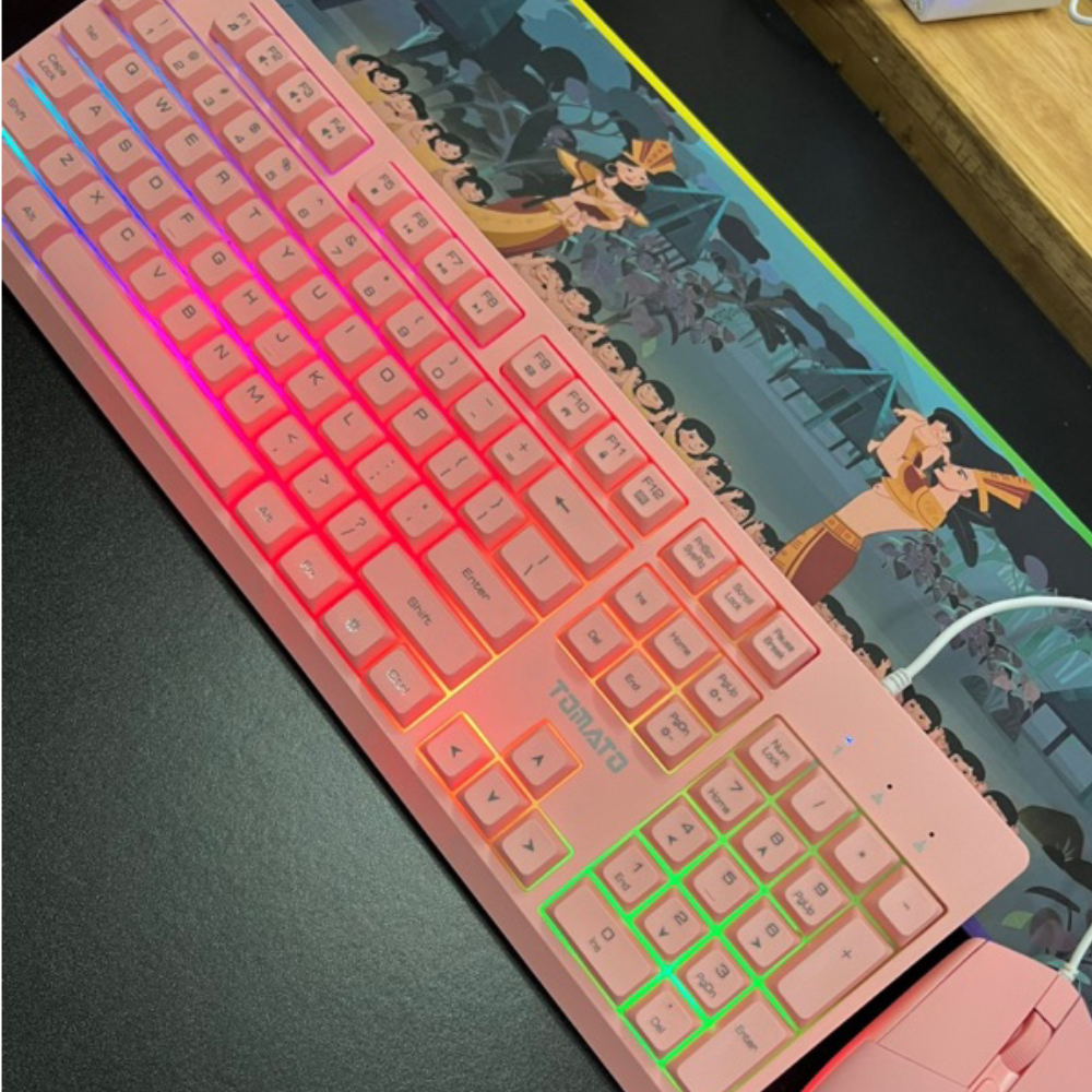 Bộ Bàn Phím Chuột Giả Cơ TOMATO S100 Led - Màu Hồng