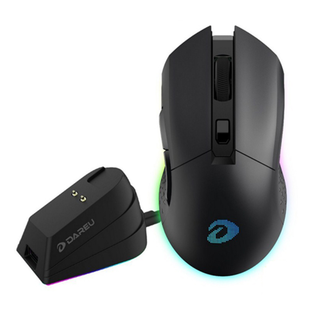 Chuột không dây DareU EM901X được trang bị hệ thống đèn LED RGB 16.8 triệu màu, cho phép bạn tùy chỉnh màu sắc và hiệu ứng ánh sáng theo ý thích. Đi kèm với chuột là dock sạc cao cấp, giúp bạn sạc pin một cách nhanh chóng và tiện lợi. Dock sạc này không chỉ là nơi để chuột khi không sử dụng mà còn là một phụ kiện trang trí, giúp tô điểm cho không gian làm việc của bạn. Đồng thời, đèn LED RGB trên chuột và dock sạc được đồng bộ hóa với nhau, tạo ra hiệu ứng ánh sáng vô cùng bắt mắt.