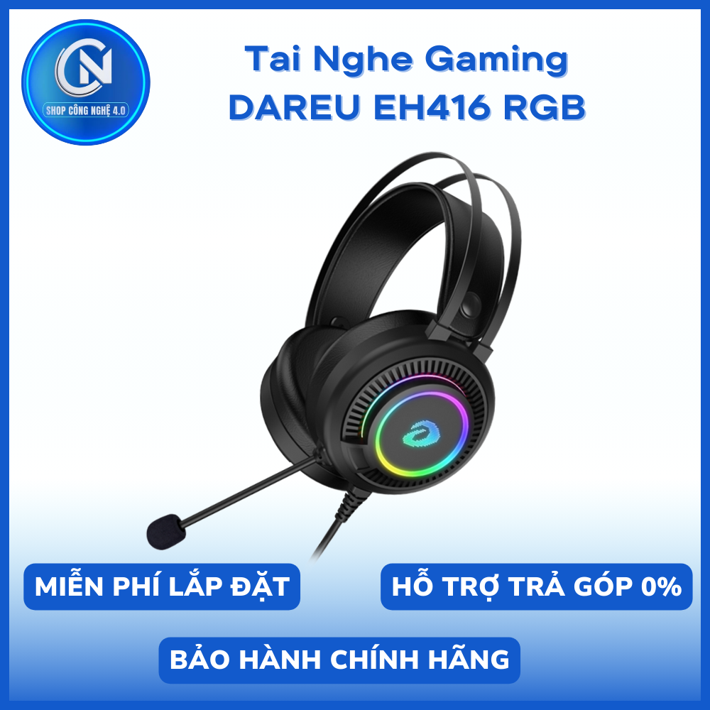 DareU EH416 RGB với đèn LED 16.8 triệu màu (tự động chuyển màu). LED được bố trí rất hợp lý hai bên tai nghe với màu trắng đẹp mắt, sáng rõ, bao gồm led viền và Logo rất nổi bật.