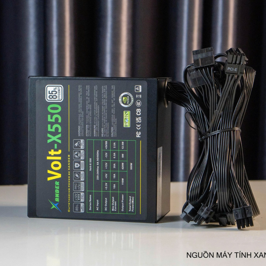 Nguồn máy tính (PSU) đóng vai trò như “trái tim” của toàn bộ hệ thống, đảm bảo cung cấp điện năng ổn định và an toàn cho CPU, mainboard, RAM, VGA và các linh kiện khác. Với công suất tổng 550W, sản phẩm này là lựa chọn hoàn hảo cho những bộ PC văn phòng, học tập, giải trí đa nhiệm và cả các cấu hình gaming phổ thông, cần sự ổn định lâu dài và hiệu năng cao hơn so với nguồn 350W thông thường.