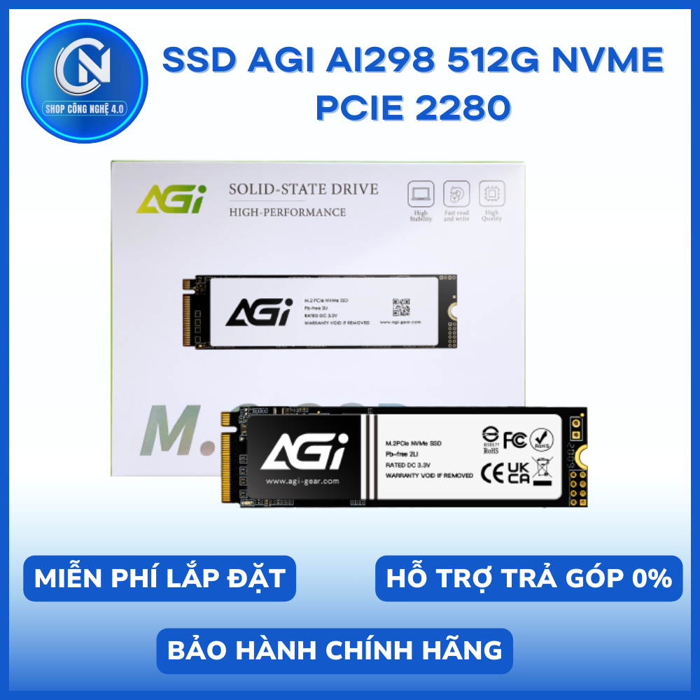 Ổ cứng SSD AGI 512G AI298 512 GB PCIe Gen 3 x4 NVMe không chỉ là giải pháp lưu trữ hiệu quả mà còn mang đến tốc độ đọc/ghi vượt trội nhờ tốc độ công nghệ PCIe Gen 3 x4. Với thiết kế nhỏ gọn, ổ cứng dễ dàng lắp đặt trên nhiều loại máy tính , đáp ứng nhu cầu lưu trữ cơ bản với dung lượng 512GB. Đặc biệt, độ bền cao và khả năng chống sốc hiệu quả đảm bảo dữ liệu của bạn luôn an toàn.