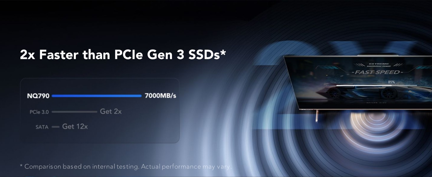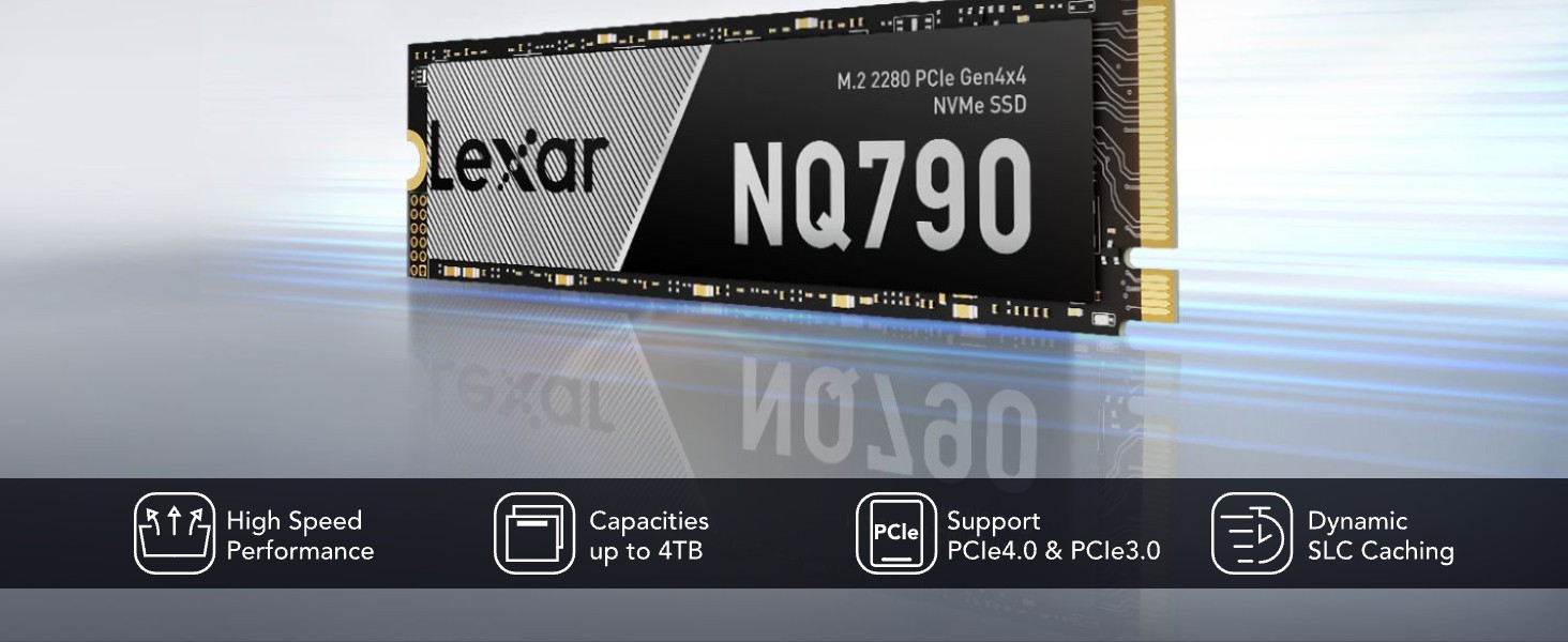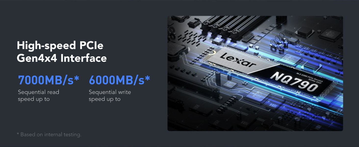 Ổ cứng SSD Lexar NQ790 M.2 PCIe Gen4 x4 NVMe có tốc độ truyền dữ liệu cực cao, lên tới 7000MB/s đọc và ghi 6000MB/s giúp bạn vượt qua vạch đích đầu tiên hoặc dễ dàng đáp ứng những thời hạn khắt khe nhất của bạn