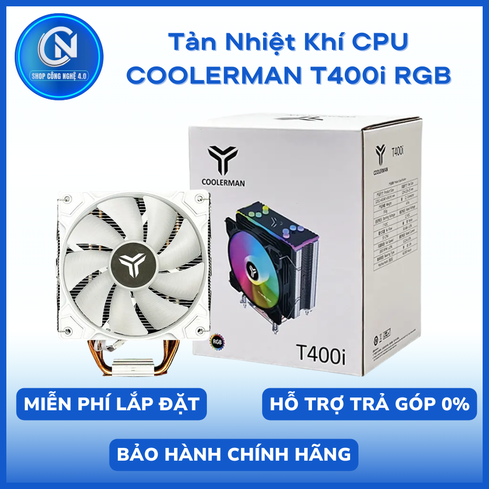 Tản nhiệt khí CoolerMan T400i là một trong những sản phẩm tản nhiệt khí nổi bật trên thị trường hiện nay, không chỉ với hiệu suất làm mát ấn tượng mà còn với thiết kế đẹp mắt và hệ thống đèn LED RGB đổi màu. Hãy cùng điểm qua những tính năng nổi bật của sản phẩm này.